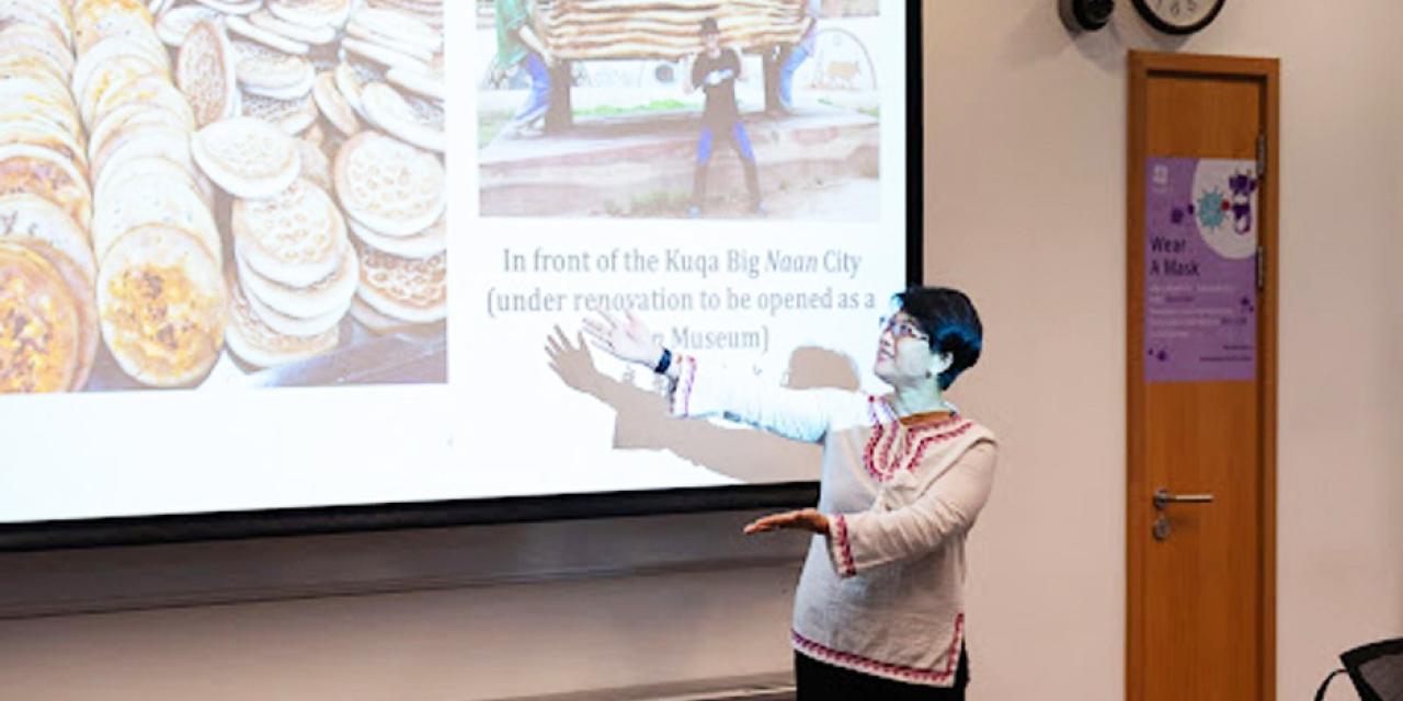 In this talk, NYUSH professor and food historian Shuang Wen narrated the stories behind the foods discussed in the chapter "Journey to the West," of Shark's Fin and Sichuan Pepper, this year's NYUSH Reads text. Professor Wen discussed the history of dishes such as nan, samsa made in a tandoor oven, polo (or pilaf as an alternative spelling), and springy pulled noodles, and more. Some of the dishes were provided as refreshments for guests to try out! With photos taken by herself in Xinjiang, Prof. Wen invited students to think deeper about the history of crop cultivation and food technology transfer between China and Central/West Asia.