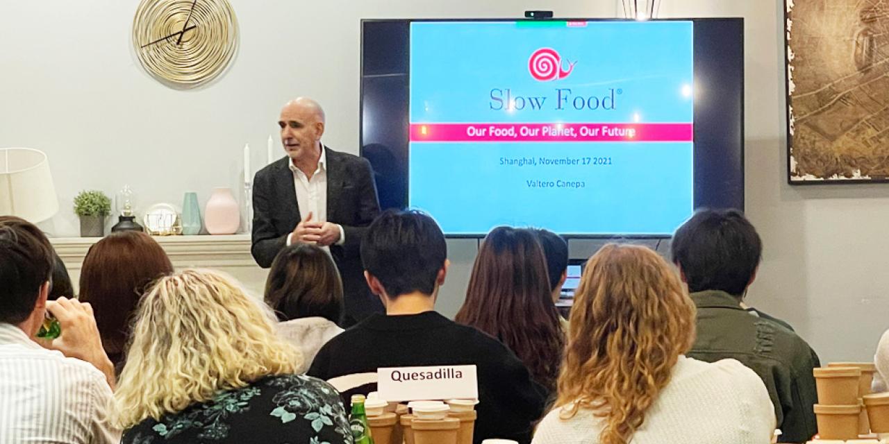 NYU Shanghai Reads is happy to present a lunch-hour salon discussion about food consumption in China. During this event, we welcomed two presenters who gave talks on the topic of sustainable food: Shiyin Wang, a Shanghai-based chef and creator of Kaixin Cooking and Valtero Canepa, the Convivium Leader of Slow Food Shanghai. Both discussed current trends and challenges in food sustainability, with an emphasis on China. The talks were followed by a Q&A, allowing NYU Shanghai community members to engage deeper on the topic.