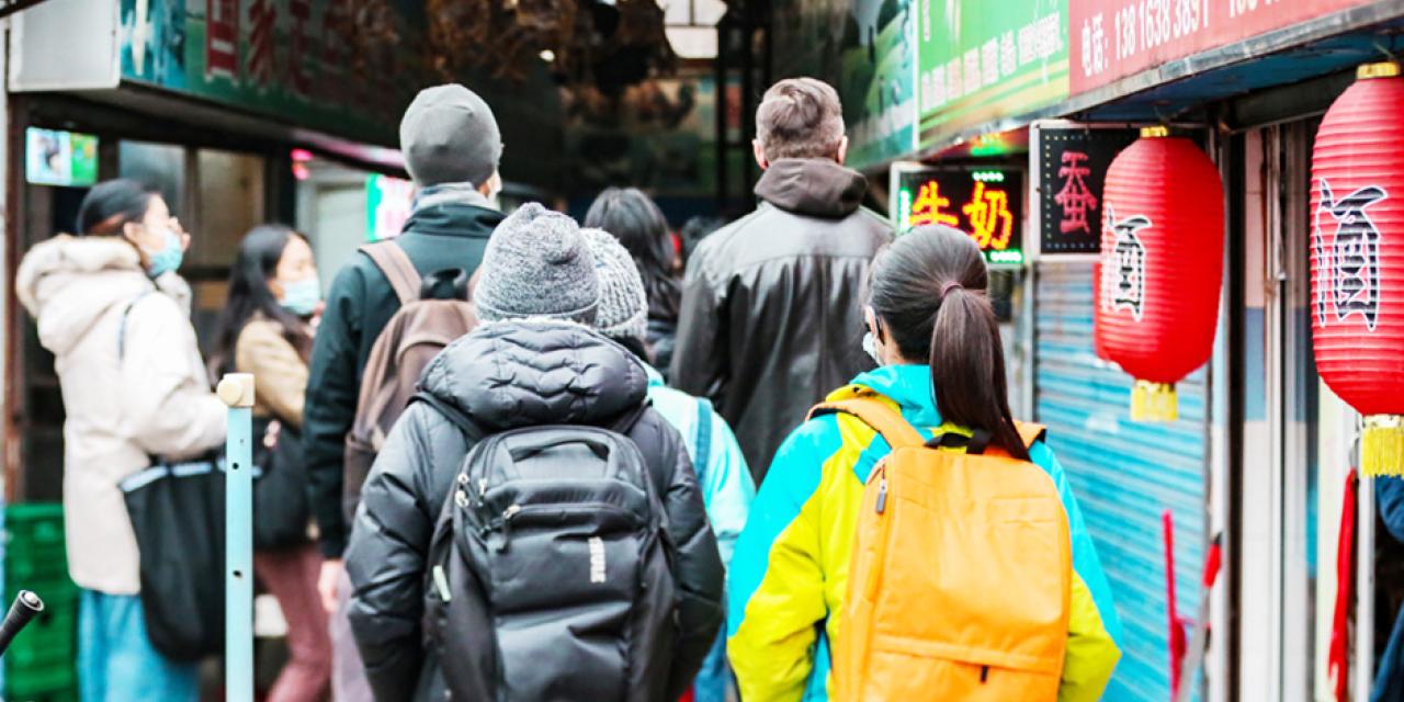 What does it mean to be a community ally? Panelists Sebastian Cherng (NYU Steinhardt faculty), Kelsey Louie (NYU Silver faculty and CEO of The Door), and Kristen Glinton (NYU Shanghai alum) discussed their work in community engagement, with critical reflection on what needs to be considered before, during, and after community engagement projects. The panel is tied to a number of food security volunteer service opportunities and a walking tour of foods in Chinatown co-facilitated by Professor Steve Iams and Professor Xiaoyue Huang. During the tour, the professors engaged topics from the panel, volunteer experiences, and Fuchsia Dunlop's book to explore the tension between celebrating food in potentially food insecure settings.